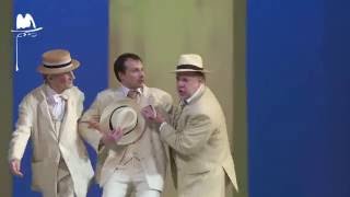 Чудо происходит благодаря актерам, сплетающим из тонких золотых нитей драгоценную ткань отношений, узелки которых складываются в сложный узор на волшебном острове Иллирия. Для Доннеллана собственно режиссура и работа с актерами неразделимы. Он обожает это прекрасное слово «труппа», потому что актеры труппы, кроме собственной индивидуальности, привносят «общую тональность» в данном случае это касается «Двенадцатой ночи», по определению Доннеллана абсолютно хорального произведения. Тональность, хорал. Музыкальные термины. И очень актуальные здесь, поскольку здесь слово оборачивается музыкой… Пьеса играется на русском языке, который в гораздо большей степени, чем французский передает ритм, гибкость, мягкость и жесткость таинственной красоты елизаветинского стиха. Драки, танцы (Доннеллан любит. Когда его актеры пребывают в прекрасной физической форме), игра слов, переодевания, неслыханное изящество шутки, отчаяние, зефиры любви, смертельные бури – опьяняющее разнообразие.