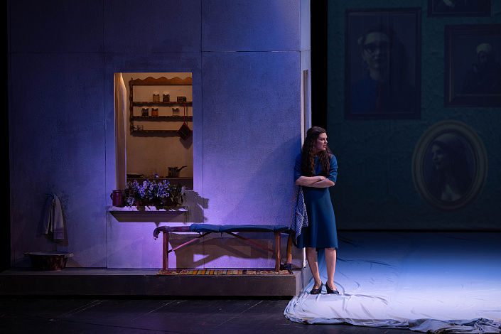В греческой мифологии и в мировой культуре имя Пенелопа всегда ассоциировалось с сильным женским характером и верностью. Пьеса, а затем и спектакль «Пенелопа» Симона Абкаряна - новый, нетривиальный взгляд на историю супруги Одиссея и матери Телемаха, одного из центральных образов поэмы Гомера «Одиссея». В его режиссерской трактовке героиня спектакля, Динах – не просто пример преданности мужу, которого она 20 лет ждет с войны. Это верность нравственным ценностям ее мира – семье, своим корням, праву человека оставаться собой. На другом полюсе - Антей, упорно сватающийся к героине не по любви, а от тщеславия и ради возможности стать «мужем царицы», – хищник, готовый идти по головам. Отдельной темой оказывается в спектакле судьба Элиаса (Одиссея), вернувшегося с войны и принявшего идеи пацифизма. Согласно канону классицизма, все события спектакля происходят за один день – субботу. Герои «Пенелопы» отстаивают свою правду и ждут воскресенья и духовного воскресения.